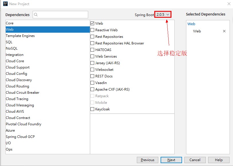 Spring Initializr 为我们提供了很多的选项,不同的选项有不同的作用,在初期我们只需要依赖Web 就可以了,选择好依赖包之后点击Next -> Finish